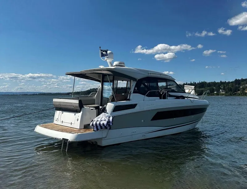 At the stern, a generous swim platform with integrated ladder makes water access a breeze. An aft locker includes a rinse-off shower, additional storage, and shore power connections-everything you need for comfort and convenience on the water.