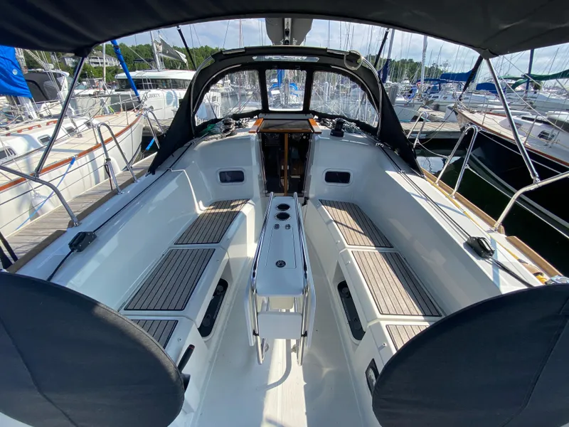 This boat features many options including independent diesel heat, rigging for asym spinnaker, adjustable backstay, bimini and dodger, cockpit table and cover, freshwater foot pump, microwave and all gear to make her Sailaway Ready!
