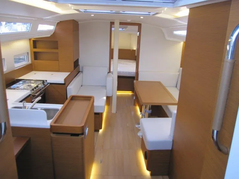Spacious Design: The Sun Odyssey 410 features a well-thought-out interior layout that maximizes space, allowing for comfortable living and entertaining. With ample headroom and wide berths, it feels more like a home than a boat. 2. Stability and Performance: Designed with a modern hull shape, the 410 offers excellent stability and performance under sail. Its responsive handling makes it suitable for both novice sailors and experienced mariners. 3. Quality Craftsmanship: Jeanneau is known for its high-quality construction and attention to detail. The 2024 model continues this tradition with durable materials and finishes, ensuring longevity and aesthetic appeal. 4. Efficient Sailing Features: Equipped with a self-tacking jib and a well-placed helm, the Sun Odyssey 410 allows for easy single-handed sailing. The layout encourages a more efficient sailing experience, especially in tight spots. 5. Innovative Technology: The boat comes with modern navigation and control systems, enhancing safety and efficiency on the water. The integration of smart technology offers improved connectivity and ease of use. 6. Versatile Cockpit: The spacious cockpit is designed for comfort and functionality, featuring ergonomic seating and easy access to sail controls. It’s perfect for socializing or relaxing while at anchor.