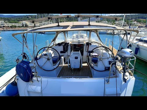 On Deck she is equipped with a furling mainsail and genoa, electric winches, bow thruster, windlass, and a bimini, dodger and connector piece to provide sun and rain protection in the cockpit. The drop transom is ideal for accessing the water and the dinghy. Full electronics include radar, autopilot, AIS, wind, speed and depth.