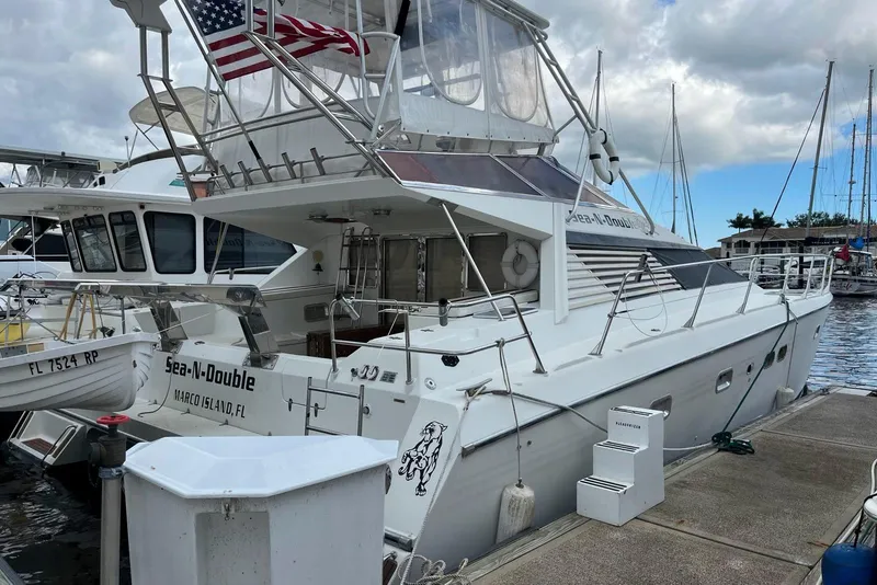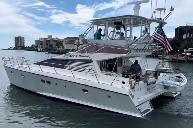 This is truly a rare find at a great price! The Jeantot Euphorie 40 is a power catamaran motor yacht that offers accommodations for up to 8 guests. The pure volume that is offered by this vessel is second to none. Powered by twin yanmar 315hp 6 cylinder diesel engines with just under 2500 hours and straight shafts (no sail drives), she flies through the water. The shallow draft allows you to go anywhere you wish. This vessel also has an Onan generator that fires right up and is ready to power the vessel's AC systems when away from the dock. This would be a great boat to travel the islands or simply coastal cruise.