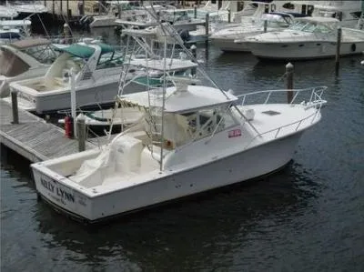 Looking for a very well maintained sportfish to spend your days on the water? Check out this beauty that has been stored inside for the last 2 years as well as being yard maintained. This boat has twin 400hp Yanmars,1400 hrs, with a Glendenning synchronizer. Ray marine radar, fish finder, GPS, auto pilot, transom door, rod holders, full tower with controls, bench seat, and large fore deck with side stanchions. Featuring bow pulpit with windlass, anchor and rode. The boat comfortably sleeps 4, with the Master featuring a full size centerline berth. It also has an enclosed head with shower. Marine A/C, 6.5 kw genset, This is the perfect vessel for fishing with a live well, fighting chair, and twin ladderback helm chairs. After getting the "catch of the day", enjoy cooking in the full galley with dinette, featuring hot and cold water pressure. A perfect way to end the day. This is a beast of an offshore vessel. Call us today to learn more. All offers over 100k considered.