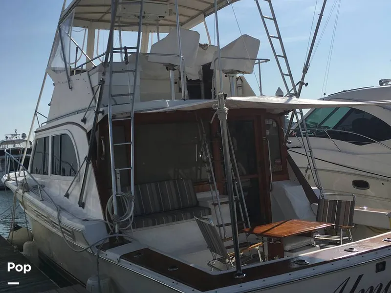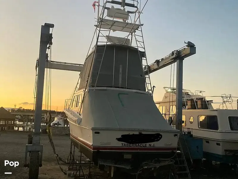 This 1980 Jersey 40 Sportfish is in excellent condition for its age, exhibiting normal wear and tear, the owner has invested significant effort into its upkeep. The boat is currently in winter storage.