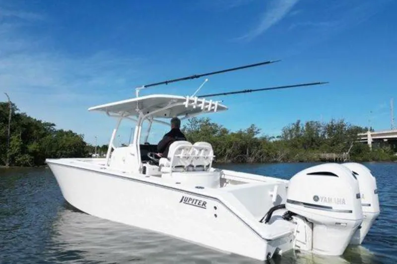 This 2018 Jupiter 30 HFS, powered by twin Yamaha F300 outboards, has been indoor-kept since new and is in true turn-key condition. Meticulously maintained and fully equipped, she's ready to fish or cruise immediately.