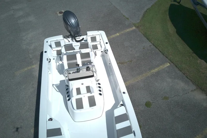 2104 Frontier with a Yamaha F200XD. Entire Hull White. White Voyage/Ligsilver Wave Interior, Console Cushion Set, Side Box Snapp Cushions, Elite Leaning Post with 70QT K2 Cooler. Fresh Water Wash Down, Lenco Trim Tabs. Reliance Yamaha Prop. Comes with Trailer.