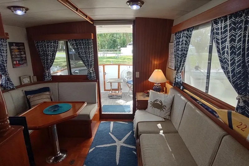 Exceptional Livability: The interior is spacious and thoughtfully laid out. The salon is bright and airy with large windows, offering panoramic views. The L-shaped settee converts to a double berth, providing additional sleeping capacity for guests.