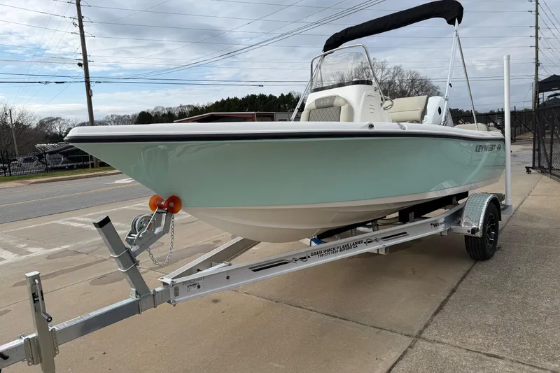 New 2026 Key West 189 FS. This boat is powered by a white Suzuki DF140 EFI 4-stroke.