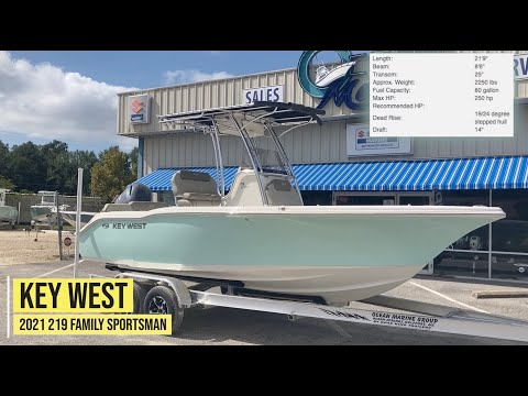 NEW ARRIVAL!Meticulously maintained 2021 Key West 219 Family Sportsman with 240 hours on the Yamaha F200XB! This boat is equipped with the minn kota ulterra trolling motor, 1243 Garmin, and forward table with filler cushion. Yearly service with water pump has just been done. For more details, contact Chandler, Bob, or Compton at (843) 576 2233.NO TRAILER: Trailers are available for purchase.The Key West 219FS is a versatile 21' 9? center console that blends offshore capability with family-friendly amenities. Built on a deep-V, foam-filled hull, it delivers a smooth, confident ride in both chop and open water while remaining easy to handle and efficient under power - ideal for cruising to fishing grounds or sandbars alike.Fishability is excellent thanks to 360° walk-around access, plenty of rod holders, under-gunwale storage, and an aerated livewell. The spacious bow casting platform and self-bailing cockpit make rigging and fishing comfortable for multiple anglers without crowding.Comfort features enhance every outing: cushioned forward and aft seating with backrests, a full-width bench with storage, ergonomically designed helm with room for large electronics, and a console that can house a portable head or changing room. Cup holders and easy swim platform access add to an enjoyable day on the water for both anglers and family.