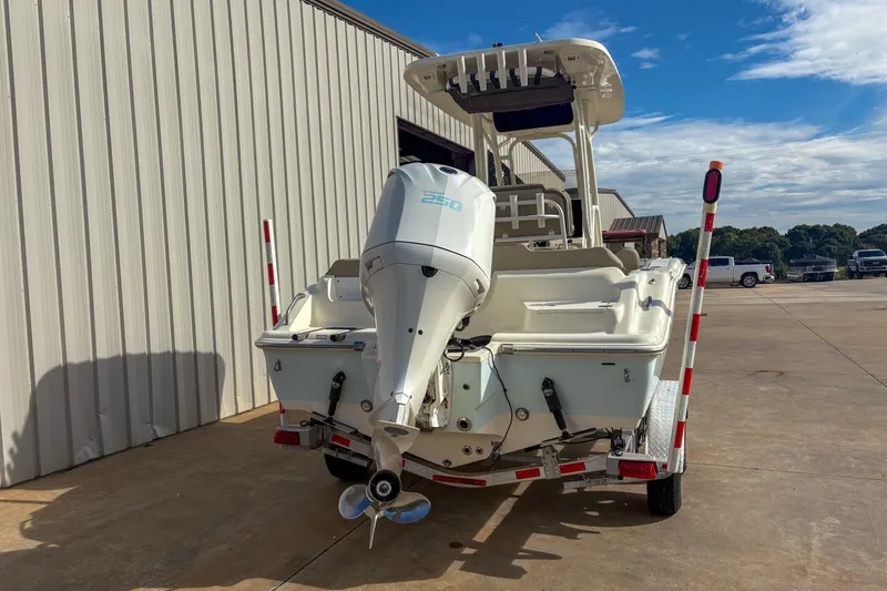 Console / Cabin: There is a changing / potty room under the console. Also provides storage; the console is large enough for electronics and often set up for flush-mount screens.Fishing-Friendly Elements: Livewell(s) (often ~20 gallons), rod storage in the gunwales, trolling rod holders, hardware suited for fishing. Trim tabs available; swim platform with ladder.