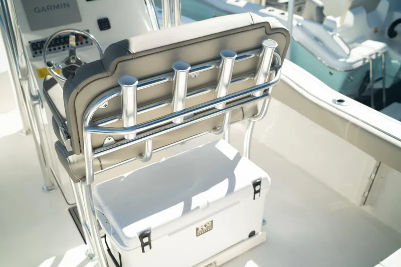 Its spacious center console design provides ample room for everyone, with comfortable seating, abundant storage, and even a convenient marine head. Whether you're casting lines, enjoying water sports, or simply cruising, this boat's deep-V hull delivers a stable and smooth ride.
