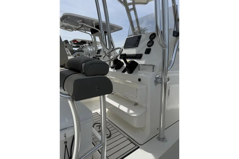 The 219FS expands the creature comforts of the rest of the line up into a boat that can take on some serious open water. The 219FS is a large boat with more floor space, rod storage, dry storage, and seating than the competition. The spacious front deck can effortlessly switch between comfortable forward faced seating with backrests to twin dry storage or fish boxes as you need. The console houses a large changing room that doubles as a tremendous storage space. The dash panel will flush mount up to 12" screens, and most radios, gauges, and controls. The rear bench seat has fully lined storage areas underneath the comfortable seating and the swinging transom door offers easy entry for swimmers. With emphasis on comfort, fishing, and safety, your Family Sportsman will feature more seating and storage, even a changing/potty room, while having the fishing features you would expect in any center console design, like rod racks, trolling rod holders, live well, and even a macerated fish box in some models.