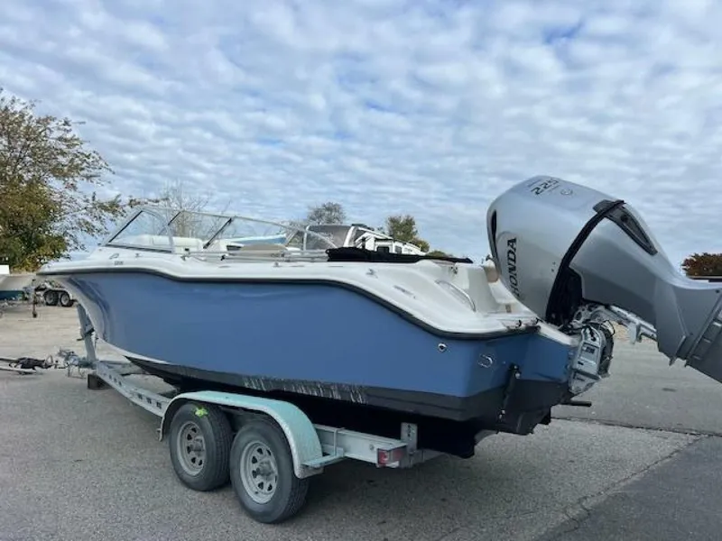 The 239DFS is loaded with amenities, comfort, style, and performance. She is equipped with a Honda 225hp engine with 1050 hours. Engine warranty until 2026 can be extended for an additional 2 years (New engine can be installed at an additional cost) ,stereo ,Speakers and a Garmin chartplotter. She is fully equipped and ready for her next adventure.