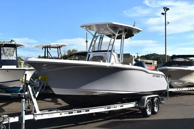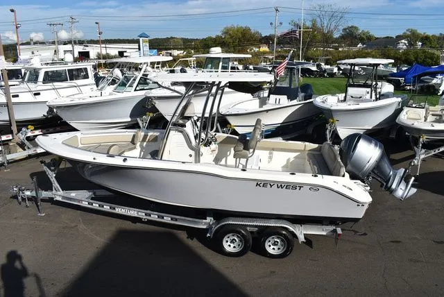 2023 Key West Boats 239 FS Center Console. The 239FS offers the largest cockpit in its class and loaded with features for both family comfort and serious fishing. The Family Sportsman Series model fits the needs of any modern active family. With emphasis on comfort, fishing, and safety, this Family Sportsman will feature more seating and storage, even a changing/potty room, while having the fishing features you would expect in any center console design, like rod racks, trolling rod holders, live well, The Key West 239FS is the answer to the question of whether a boat can fish hard on Saturday and then capture family fun on the water on Sunday. She provides plenty of roominess and fishing features to bring home the big catch while also providing the comfort features of a relaxing bow lounge and an aft bench seat that can easily accommodate five across.