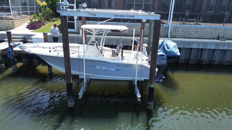 Introducing the stunning 2022 Key West 244 Bluewater, a remarkable center console boat that combines performance and elegance. With an overall length of 24.33 feet, this vessel features a robust fiberglass hull designed in a deep Vee shape, ensuring stability and smooth navigation through various water conditions. Powered by twin Yamaha F150XCA outboard engines, each delivering 150 horsepower, this boat promises exhilarating speed and reliability, with only 201 hours of use. The thoughtful design includes ample space for comfortable seating, making it perfect for family outings or fishing adventures. The Mi Mujeres is equipped with essential features that enhance your boating experience, providing a blend of functionality and style. Whether you're cruising along the coast or enjoying a day on the water, this center console boat is sure to impress with its performance and aesthetic appeal.