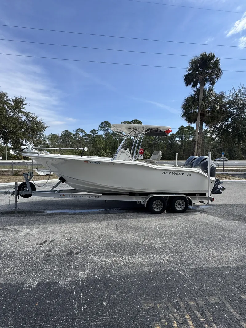 This 2023 Key West 244CC is a masterclass in versatility, designed for the angler who refuses to choose between a deep-vee offshore machine and a shallow-water fishing platform. Powered by Twin Yamaha 150hp Four-Stroke outboards with only 73 hours, this boat offers the safety and redundancy of twin engines with the fuel efficiency Yamaha is famous for.Built with Key West's Second-Generation Stepped Hull and an aggressive Carolina bow flair, this boat stays dry and stable whether you're 30 miles out or 2 miles in.Detailed SpecificationsLength Overall (LOA): 24' 4'Beam: 9' 0'Dry Weight: 3,100 lbsDraft: 16' (Engine up)Deadrise: 21°/24° Stepped HullFuel Capacity: 140 Gallons (Pressurized Aluminum Tank)Passenger Capacity: 9 PeopleFreshwater Capacity: 15 GallonsPremium Upgraded FeaturesEngine Power: Twin Yamaha F150XB Outboards (Total 300HP) with Stainless Steel Props.Trolling Motor: GPS-guided Trolling Motor with Spot-Lock and dedicated multi-battery charging system.Electronics: Single 12-inch Garmin Touchscreen Multi-Function Display (GPS/Chartplotter/Sonar).Audio: Fusion Bluetooth Stereo System with premium speakers throughout.Steering: SeaStar Hydraulic Tilt Steering for effortless control.Fishing & Functional DetailsLivewells: Dual 18-gallon aft livewells with independent plumbing and LED lighting.Fish Box: Massive macerated forward in-floor fish box with overboard drain.Rod Storage: 9 stainless steel flush-mount rod holders plus under-gunwale storage for 8' rods.Trim Tabs: Lenco Trim Tabs with LED indicator switch.Anchor Locker: Integrated molded locker with anchor, rope, and chain.Washdown: Raw water washdown system and a 15-gallon freshwater shower station.Comfort & ConvenienceSeating: Premium independent flip-bolster leaning post with a 94qt cooler.Family Features: Full bow cushion package, folding seat in front of console, and a removable fold-down transom bench.Console: Spacious walk-in changing room/head compartment with interior lighting.Protection: Deluxe T-Top with radio box, spreader lights, and integrated rod holders.Why Homosassa Marine?As a 5-Star Yamaha Key Dealer, we specialize in high-performance outboards and premium center consoles. This 244CC has been fully inspected and is ready for its next owner.