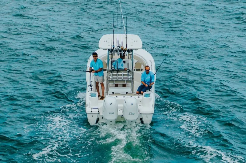 The 244 CC sports our second generation steeped hull, an extreme angle of entry, and an exaggerated bow flair that make for a comfortable, dry run. Features such as bow and stern seating options, standard freshwater, and console changing room make it family-friendly as well. Our Center Consoles are some of the best appointed boats on the water because of the versatile range of utility found in every model, whether you're headed fishing or out for a casual day on the water with family. You can expect to find extensive rod holders and storage capacity, live wells, generous cockpits, and fish boxes in this series, and even a few options for creature comforts such as bow cushions and jump seats.