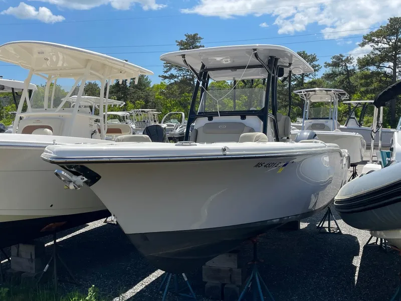 This model is full of features that enhance the design and performance, providing the active family with all they could ask for on the water. Some of the standard features include an under-deck windlass, eight-speaker stereo with amplifier, hardtop, side entry door with hidden ladder, and power assist steering. It remains a highly fish-able vessel with features like dual live wells, a macerated fish box, 22-rod holders, and horizontal storage racks under the gunnels to hold your longest saltwater rods.