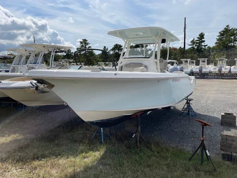 This model is full of features that enhance the design and performance, providing the active family with all they could ask for on the water. Some of the standard features include an under-deck windlass, eight-speaker stereo with amplifier, hardtop, side entry door with hidden ladder, and power assist steering. It remains a highly fish-able vessel with features like dual live wells, a macerated fish box, 22-rod holders, and horizontal storage racks under the gunnels to hold your longest saltwater rods.