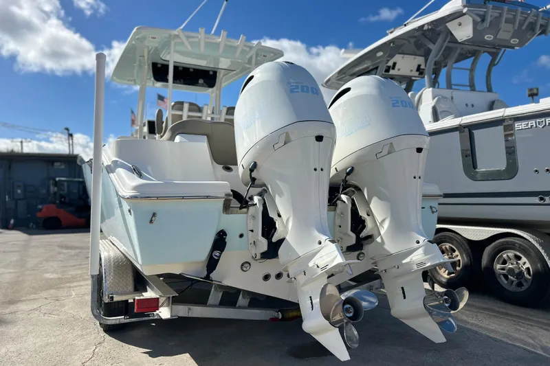 Here at Boat Kings we just got in this beautiful Key West 263 FS! This boat has a beautiful Ice/Sky blue hull, with fly-by Twin Yamaha 200hp Four Strokes. Key West is a household name that brings beautiful finishes with the family in mind while being a serious fishing machine. Feel free to contact us to see more videos or pictures, or come swing by our shop to see this boat in person! Some of the options are: