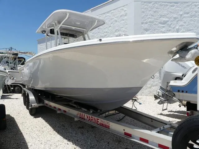 The 263FS is a perfect choice for family, fishing, or just cruising on the water.This model is full of features that enhance the design and performance, providing the active family with all they could ask for on the water. Some of the standard features include an under-deck windlass, eight-speaker stereo with amplifier, hardtop, side entry door with hidden ladder, power assist steering, and Seakeeper Ride system. It remains a highly fish-able vessel with features like dual live wells, a macerated fish box, 22-rod holders, and horizontal storage racks under the gunnels to hold your longest saltwater rods.