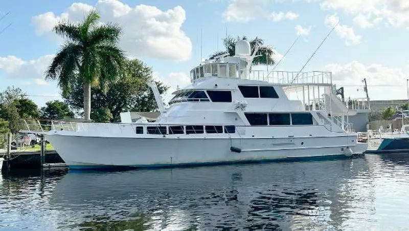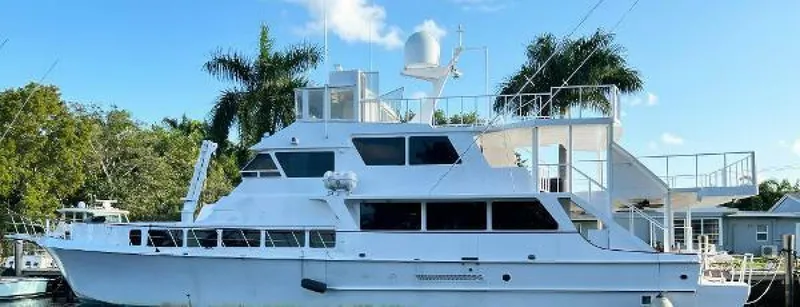 Casual Luxury and unmatched space with 3 expansive decks. Perfect for Family Live aboard or vacations and entertaining.The ultra-wide 28 foot beam, full walk-around decks, and spacious living areas offer an exceptional level of comfort, space and convenience. Accommodations include 5 en-suite Staterooms, 3 refrigerators, two chest freezers and lots of storage.