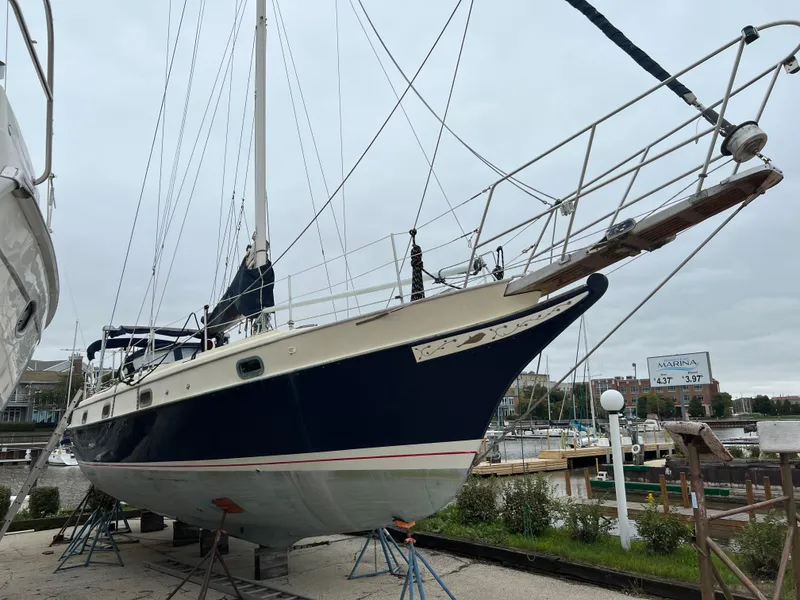The Krogen 38 was designed by Jim Krogen as his own personal sailboat for gunkholing in the shoal waters of Florida and the Bahamas. She's meant to be single or shorthanded weeks at a time in a sailors paradise. The interior is varnished teak and white battened overhead. Ten bronze opening port lights, 4 aluminum framed deck hatches, three deck prisms, (4)four - 4" Dorade vents and 1 cabin fan provide excellent natural light and ventilation. There is DC LED lighting including courtesy lights to illuminate the teak and holly cabin sole.