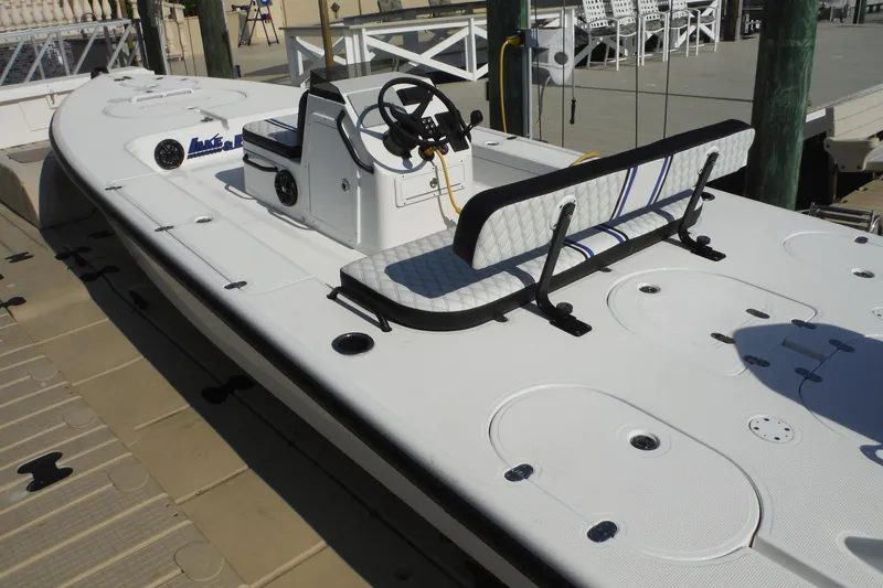 The Lake and Bay Boca Grande 21 is one of the most versatile flats boats ever built. Hand laid lightweight composite construction that can handle the horsepower and years of tournament fishing. New features on the 21 are a new style console with room to flush mount Gps/Fishfinder in the dash, toe kick for more comfortable seating, console side door for easy access to electrical components, new easy clean up non-skid, and removable console cooler. Our customers asked and we delivered with an updated Boca Grande 21. We started by blueprinting the entire hull bottom making necessary modifications to help carry those tournament loads and get you there first. Dry storage has been upgraded with a new system exclusive to lake and bay boats matched with extra deep gutters around all the hatches to make sure your equipment stays dry. Storage has also been greatly improved with a larger forward hatch, bigger compartment openings, and a huge storage compartment under the driver's seat. Lake and Bay has been building custom, high-performance tournament boats for over 35 years. Take a look at Lake and Bay's Boca Grande 21 and see for yourself why it is the most versatile flats boat ever built.