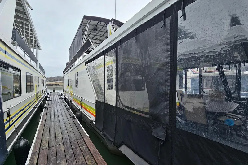 This well-maintained 2002 Lakeview 16' x 60' Widebody houseboat offers a comfortable layout with four bedrooms, making it a great option for enjoying weekends on Lake Cumberland with family and friends. The interior features a welcoming living area, a fully equipped kitchen with modern appliances, and a king master bedroom along with three additional sleeping areas.