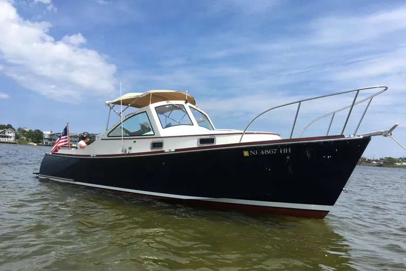 She cruises up to 32 knots, is highly fuel efficient, and shallow draft. The cabin features a small galley, enclosed head and a comfortable V-berth for afternoon naps or the occasional overnight. Power is provided by a fuel-efficient, quiet, freshwater-cooled Volvo 225 HP diesel with the lowest emissions in the industry. Construction is cold-molded epoxy composite, offering superior strength, performance, and longevity.