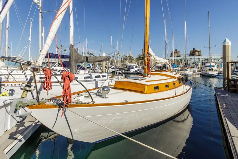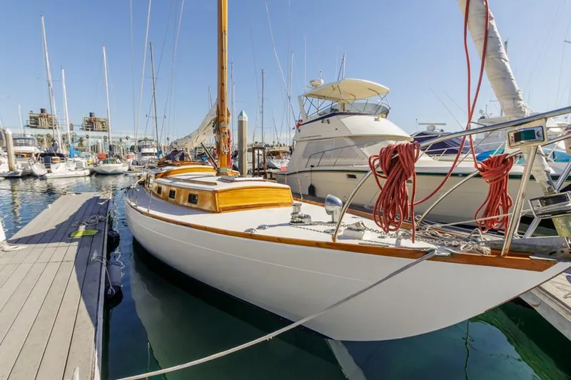 This beautiful classic sailboat needs to be seen to be appreciated. She is ready for a daysail, weekend in Catalina, or long distance trip. Beautiful on deck and below. The interior sports are full V berth up front with large salon with table/bed, Galley, and full head. The boats comes with several covers, from full boat to cockpit only. This is the classic hull the was the precursor for the famous Cal 40.