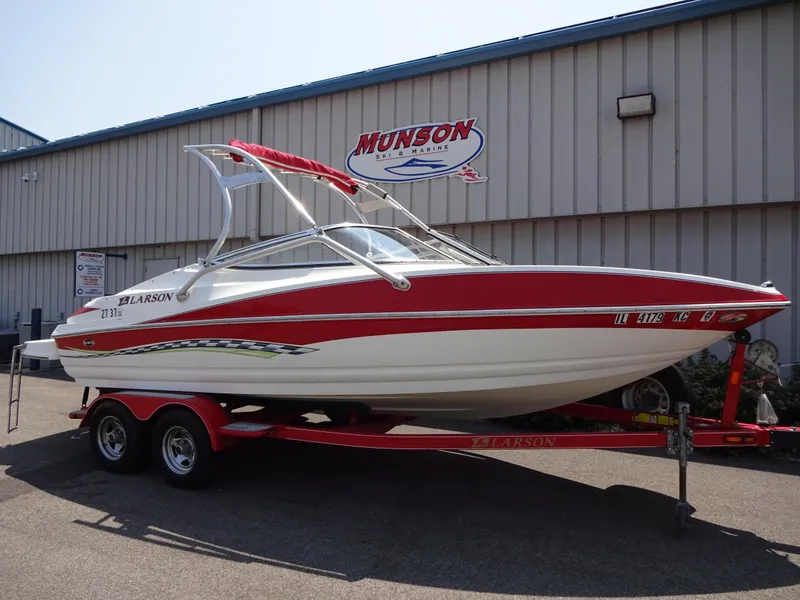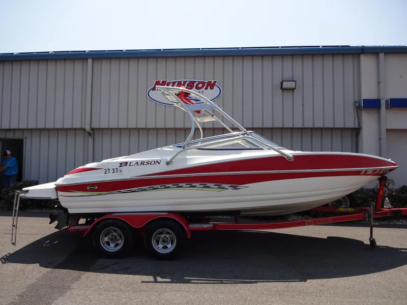 Cleanest 2007 you can find and mechanically sound! 2007 Larson 20' boat with wakeboard tower. Boat has been mechanically surveyed by Munsons 127 point inspection including compression, bellows, gimbal, u-joints, trailer brakes, etc. Boat comes with trailer and cover. Boat comes with 30 Day 50/50 Major Mechanical warranty through Munson Ski & Marine.