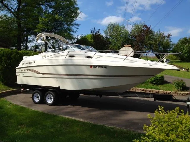 Here is a nice Larson with low hours. The boat comes with a new single 280 HP Volvo, 2007 J&C tandem axle trailer, 4 new batteries, head with shower, full canvas enclosure, sleeps 4, full galley plus much more info you can see by hitting the "FULL SPECS" button. Please contact us with any questions.