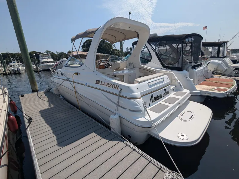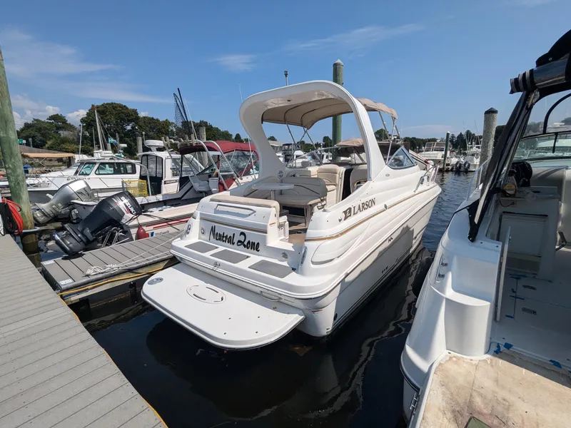 The Larson 260 Cabrio is a terrific all around family friendly express cruiser. With its 8'10" beam the cockpit has the ability to entertain with room left to move around. And access is easy for everyone through the transom door. There's a full cabin with enclosed head and shower, oversized aft cabin and fully equipped galley making the 260 the perfect get-away cruiser.