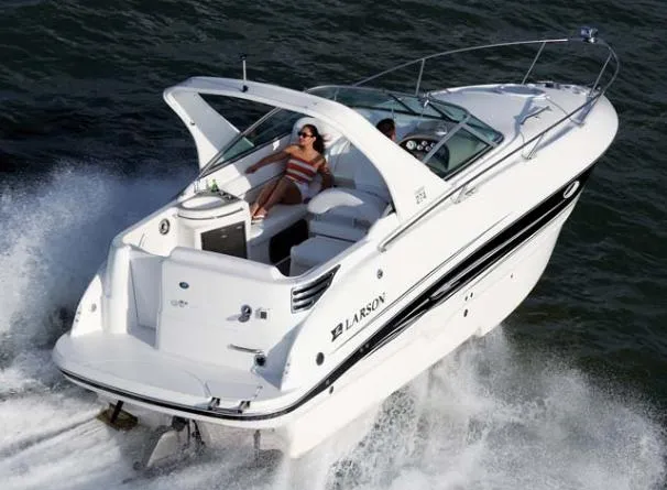 The patented Duo-Delta Conic notched hull provides the fuel efficiency we cherish without sacrificing the power-on-demand we need. The innovative deck design has an extended transom platform with deck walk-around features that give all 28' a big-boat feel. A U-shaped cockpit design features a face-to-face conversation area, laydown sunlounger or convertible dinette on the starboard side while the portside lounger with armrest provides comfort and style to your passengers. An arch mount cockpit TV and swim platform carpet are optional features.