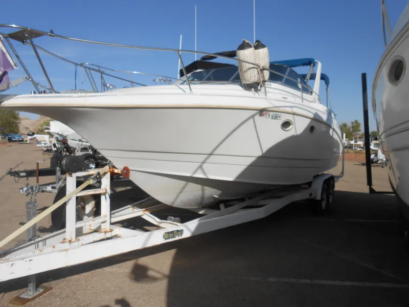 Nice freshwater vessel with some updates which include but are not limited to: Generator tune up, Blowers and hoses replaced, raw water pickup hoses replaced, Bilge pumps replaced. " The 280 Cabrio is a great meeting place for family and friends. It's spacious, open single-level cabin is absolutely the best solution for entertaining larger-than-usual groups. A sliding door leading to the roomy cockpit, which features a 5'10" lounge, provides even more space. The transom platform features integrated storage and ladder. The spacious bridge provides convenient walk-through access to the foredeck and seating for the entire family, including a double-wide helm seat, forward bench seat, plus port and starboard lounges. Below decks, the forward stateroom features a double island berth and private access to the head compartment. The galley offers an electric stove, stainless-steel sink, microwave and large refrigerator/ freezer, ice maker."