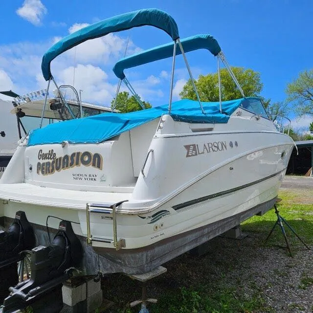 1996 Larson 280 Cabrio, Twin Merc 4.3 V6, 970 hours, Bimini Top, Camper Canvas, Bow Rail, Swim Platform, Swim Ladder, Anchor, Windlass, VHF, Depth Sounder, Galley refrigerator, Stove, Hot Water heater, Shower, Shorepower, Batery Switch, Head with holding tank