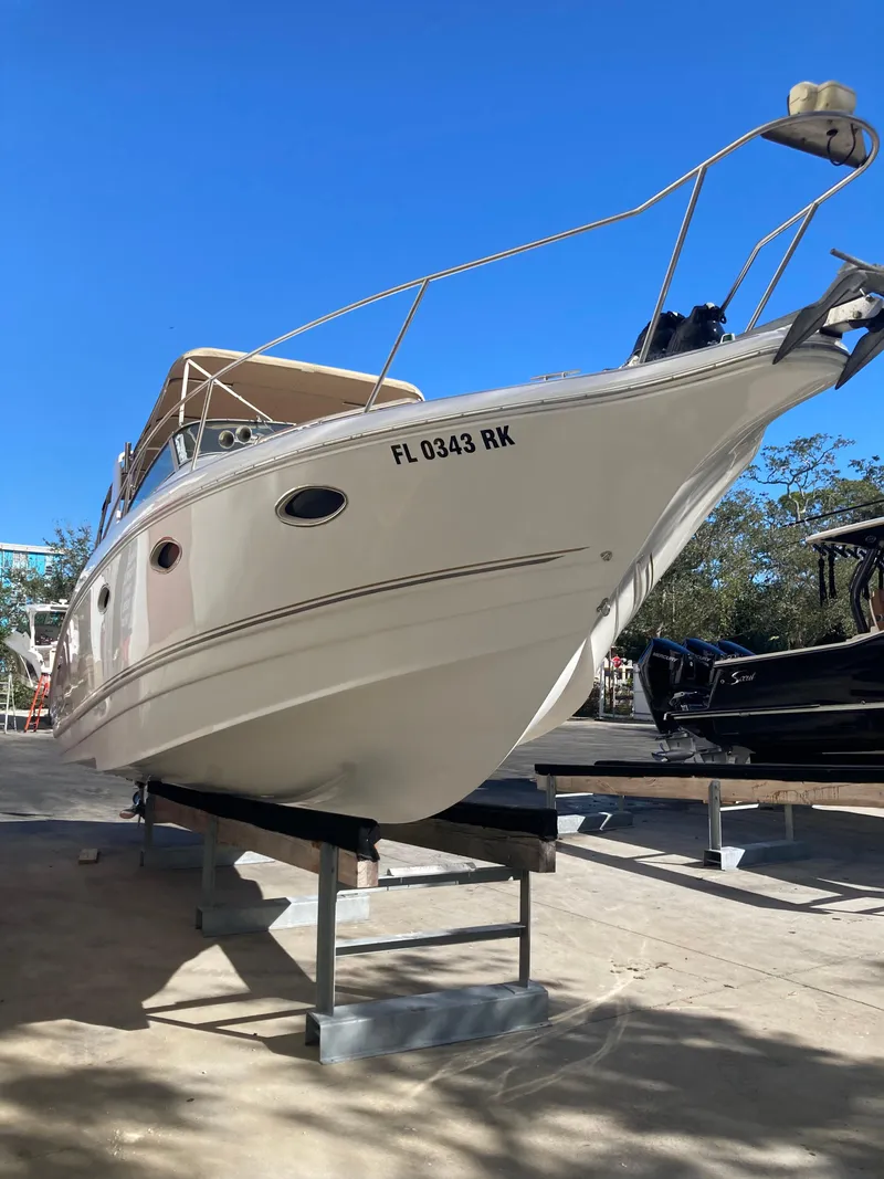 This Larson 290 Cabrio was repowered with new Mercruiser 4.3s in 2021 and has only 110 hours of use since then.