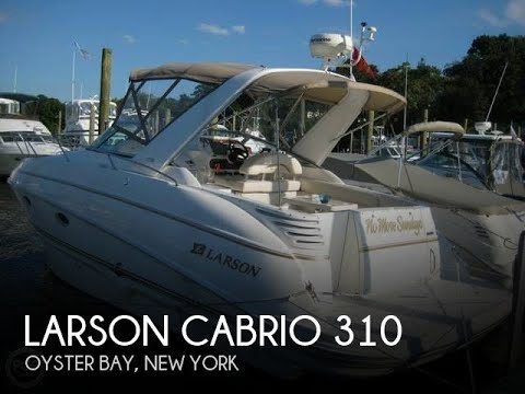 2005 Larson 310 Cabrio, twin Volvo Penta 5.7 Gi-E Fuel injected 270 hp I/O Motors. Motors have been run by us on a portable fuel tank and shift forward and reverse. We purchased this boat to re-condition it, but never found the time and now selling "As Is". We have not run the boat in the water, so never able to check systems. Boat does come with Air conditioning w/ heat, Hot water heater, Kohler 5kw Generator, Windlass anchor, Electric Marine toilet w/ overboard discharge in head compartment w/ shower and sink, Clarion stereo, CD Player, Sharp Aquos 15 inch liquid crystal TV, Battery Charger, Fireboy Automatic Fire Extinguishing system, Spotlight, Galley w/ microwave, fridge, stovetop, coffermaker, Full cockpit cover, Furuno radar, Topside bow cushion for sunning, Cockpit icemaker, cockpit removable table, cockpit sink, cockpit portable grill, GPS/Sounder, In dash depthfinder, Cushioned V-Berth with sleeper filler cushion/privacy curtains/ removable table, Mid cabin recreation seating/Removable table/ sleeper filler cushion/ privacy curtain, Love seat w/ removable table and all of the original manuals that came with the boat new. This is a great boat for someone that has the time to go through it. We unfortunately do not and have to sell as is. We are capable of loading boat on trailer to take it away. Please contact us by email or phone at 203 466-5384 with any questions or concerns and ask for Mark or Karl. Thank You, Diamond Marine