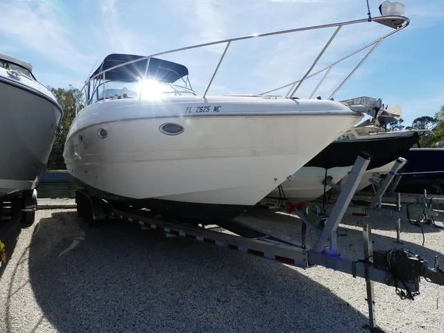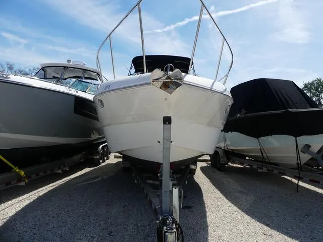 The cockpit is equipped with ample seating, a wet bar, and a spacious swim platform for easy access to the water. The helm area is user-friendly, with modern instrumentation and controls for a smooth and enjoyable driving experience. Below deck, the cabin offers a well-appointed interior with a full galley, comfortable seating, and a cozy V-berth that sleeps two. The aft cabin is another sleeping area, ideal for additional guests.
