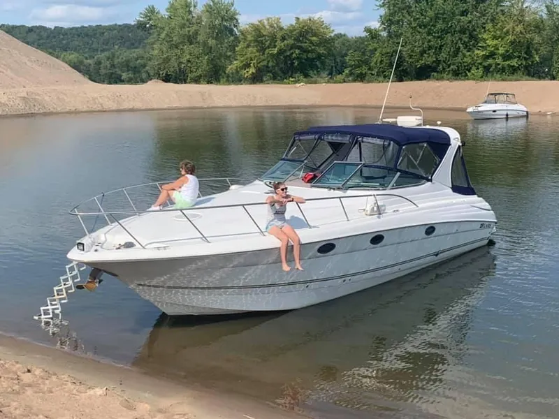 Here is a very clean, well maintained Cabrio. . The boat comes with twin 420 HP Volvos with only 780 hours, generator, marine air conditioning and heat, head with shower, sleeps 6, full canvas enclosure, windlass anchoring system, full galley to include AC/DC fridge/freezer, stove, microwave, sink and good counter and storage space plus much more Please call us with any questions. SLIP IN HASTINGS INCLUDED FOR THE REST OF THE YEAR.