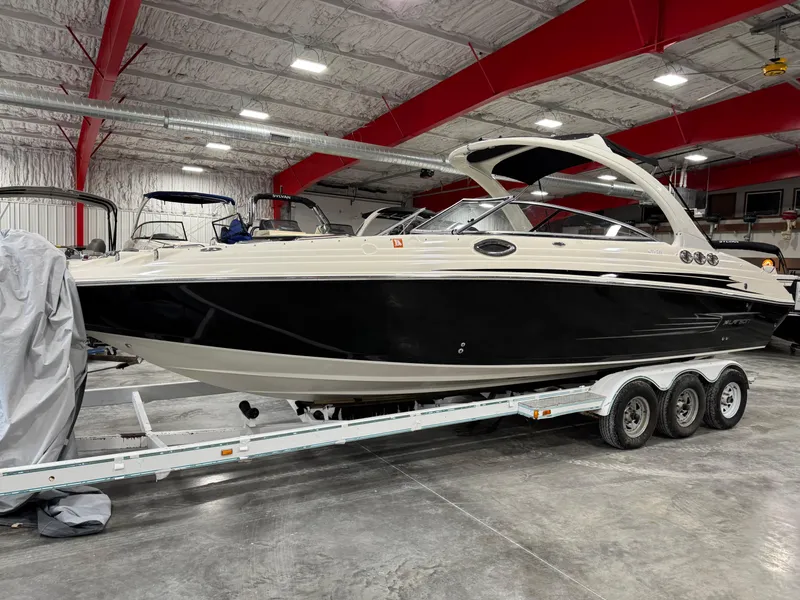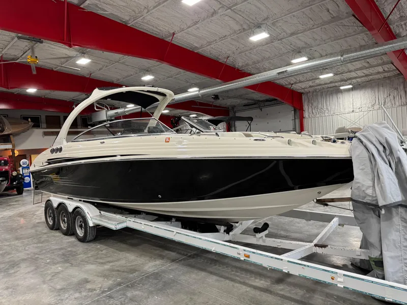 This is an an extremely great value on a very clean 29 foot bow rider equipped with a 377 Mercruiser Mag 320 hp V-8 with only 443 hours of run time over key left on or idle RPMs, bravo three drive, collapsible factory arch, walk-through transom, newer Sea Deck style flooring, full cover, enclosed head, AM/FM stereo, and more. Price does not include Trailer but we have used if available for $4900 or new for $6900. Financing and delivery are available. We accept trades.