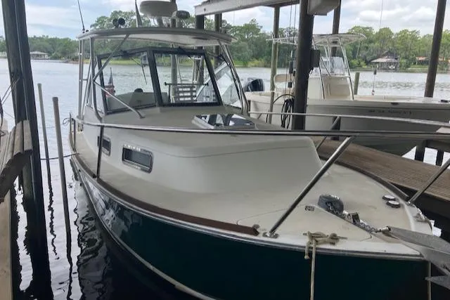 The Legacy Express though rare on the Gulf Coast represents the "Down East" style of "picnic boat" one would expect to see in the waters of New England. Robin adds the even rarer hard top to the mix and along with the beefy single Yanmar diesel and bow-thruster combo makes for a very efficient coastal cruiser and near coastal fishing machine. The gel coast. paint and fixtures are all age defying, and the up grades include: new bow thruster 2024, new water heater 2024, new head 2024, new VHF antennas 2024, new shower sump pump 2024, and the engine was completely services with new timing belt, fuel sending units, impeller, repainted and valve adjustment, and complete oil and filter less that 20 hours ago, with less than 700 hours you can enjoy years of worry-free future enjoyment. Additionally the new bottom paint and zincs also 2024 with very little use since.