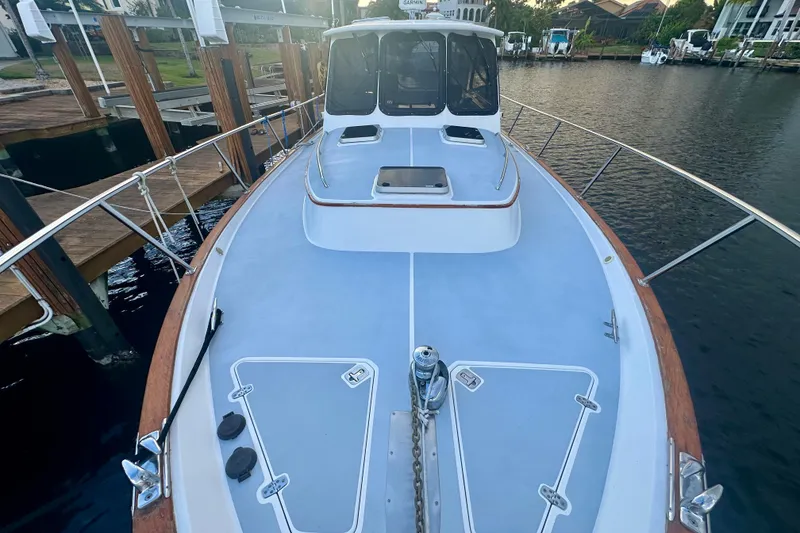 Beautiful boat! These boats were custom builds (until end of 05) and constructed very well. Offers much more than other boats her size in the downeast styled vessels. Single 440 HP Yanmar with a bow thruster makes for care free running with an 18 knot cruise! In the recent past this boat has gotten a new bottom, hatch covers, cockpit upholstery, eisenglass and canvas, batteries and a new Garmin electronics package with big 19" MFD, closed array radar, autopilot, and a larger MFD located above autopilot. Dedicated transducer also installed at that time.