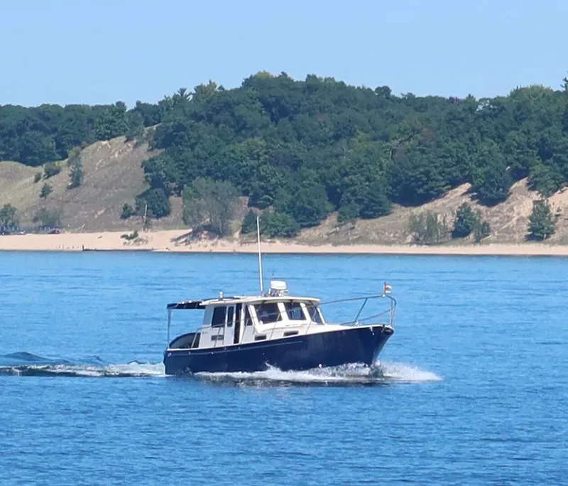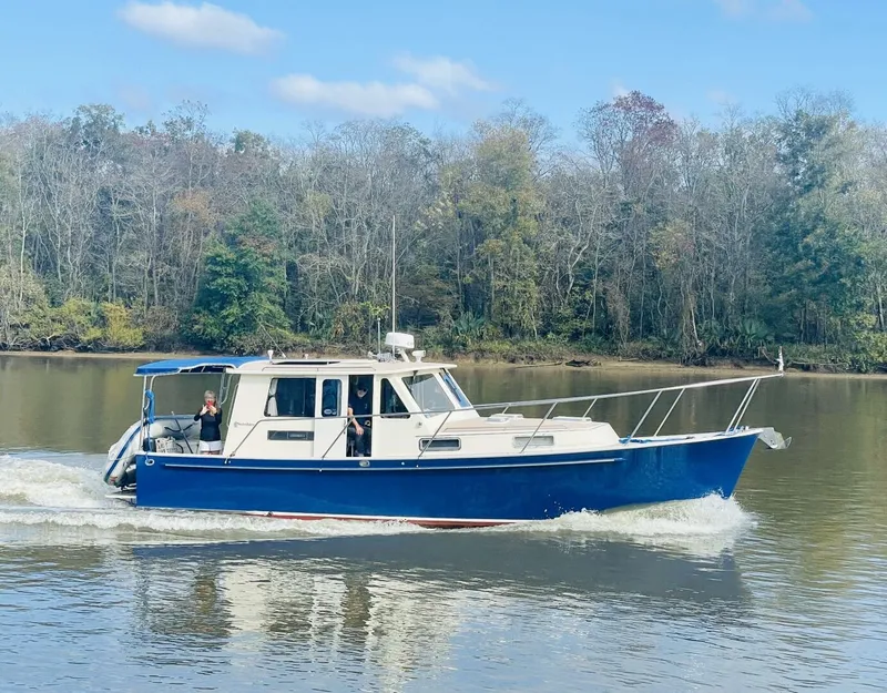 Sunshine is a Mark Ellis designed 2003 34' Legacy Downeast express cruiser. She offers twin Cummins 330 HP main engines, Kohler 6 kW generator (2022), Mastervolt 2,000 watt inverter, Reverso oil change system, two 250 watt solar panels, Awlgrip painted hullsides, canvas over aluminum frame bimini covered cockpit, very wide side decks and an enclosed shower in the head. Sunshine is a Great Loop veteran and gives great flexibility for the Great Loop with her 10'2" air draft.