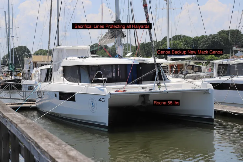 "Why Knot" features ample, open living spaces, numerous long term sailing upgrades, including an advanced Lightning Protection System (LPS), waste management system (owner's cabin), forward scanning sonar, 4-blade feathering max props, 4 NEW sails including Main, Genoa, Code Zero (original sails still in good shape), new brand name ISTEC Parasailer, increased storage areas, and new bottom paint.
