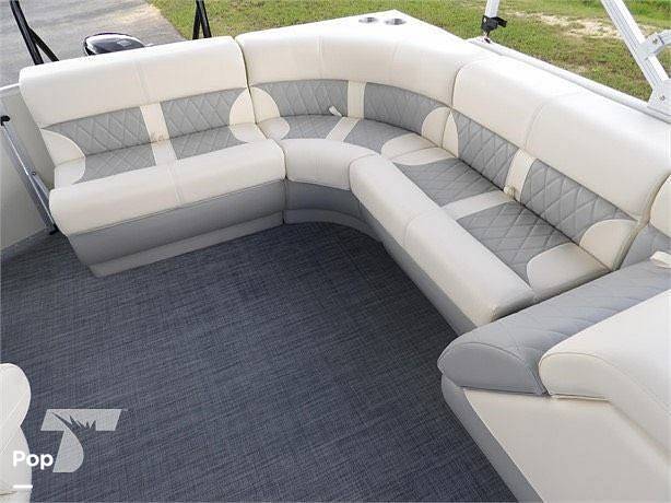 It is built on 23-inch Diameter Aluminum Pontoons - has premium furniture that is cushy and comfortable - with heavy duty fencing and stainless steel swim ladder. There is room for up to 12 people on board and is powered by the Suzuki 50 hp four-stroke outboard motor that is still being broke-in with less than 5 hours on it.