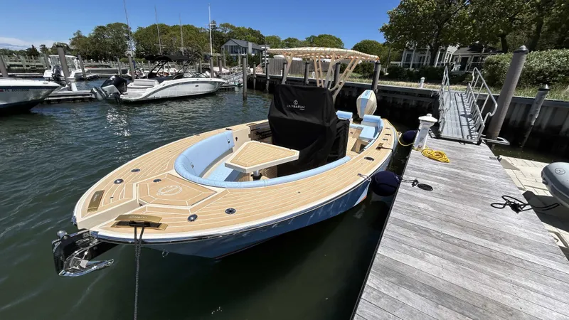 Experience Italian craftsmanship at its finest with the Levanzo 25 Lounge Deck - a luxurious 25-foot day boat that masterfully blends timeless design with modern performance. Perfect for entertaining, coastal cruising, or day trips with family and friends, this vessel delivers elegance, functionality, and versatility in every detail.