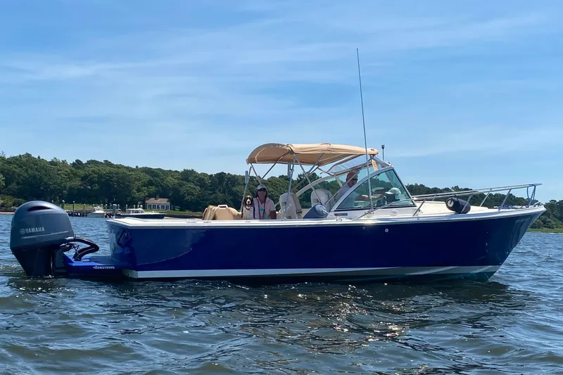 This extremely rare 2019 26' Limestone Medeiros is 1 of only 2 ever built with twin outboard power and a custom Armstrong bracket. A unique example of Limestone's renowned cold-water hull paired with modern performance and redundancy. Some photos shown are of the sister ship Elise, as the vessel being offered is currently shrink-wrapped for winter storage. Wiggle is more highly optioned, featuring a custom Royal Blue hull, upgraded soft goods, and a stainless steel bow rail.