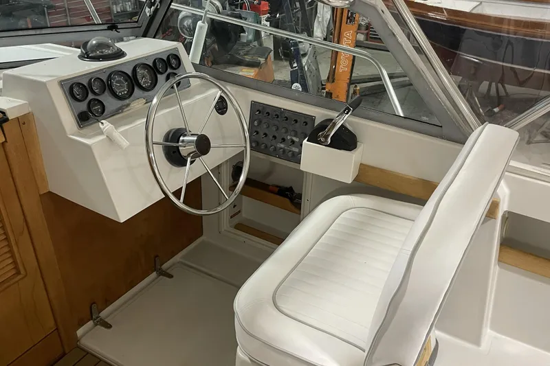 1993 24 Limestone Express powered with a FWC 7.4L Mercruiser I/O coupled with a Bravo I sterndrive with under 500 hours. Manifolds and Risers updated and engine and outdrive serviced winter 2026. Beautiful white enclsoure and new V-berth cushions.