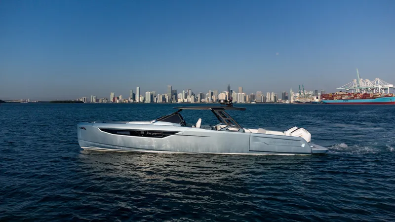 The unique and stunning Limitless Seas XLV is the premier luxury boat that does not compromise on performance. Powered by twin Mercury V12 600hp Verado's, the XLV can reach a top speed of 60mph! Bask in the sun on either the bow or aft sunpad or lower the terrace doors for a truly unique way to lounge at the sandbar. Equipped with air conditioning, generator, and a SeaKeeper 3, the XLV is ready for anything and will get you there comfortably and in style.